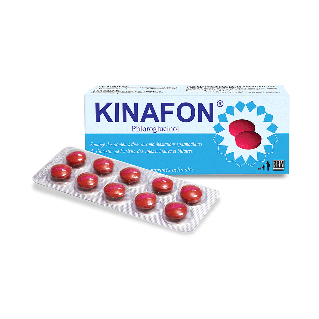 KINAFON® Film-coated tablet is a medicine used to relieve pain caused by spasmodic manifestations of intestine, uterus, urinary and biliary tracts.